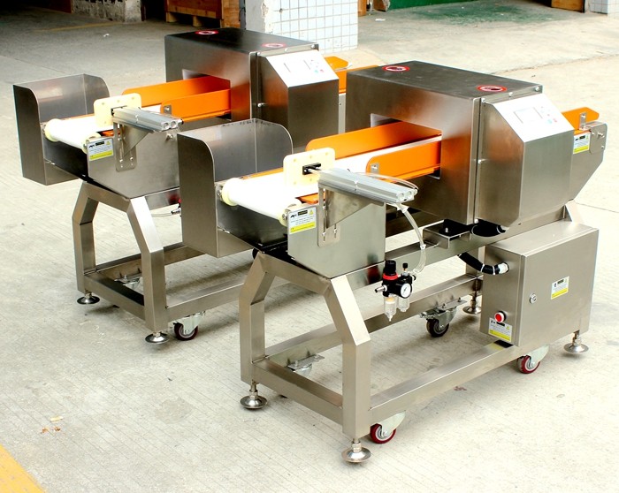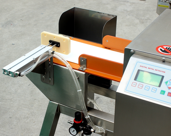 小包裝食品推桿式金屬檢測機(jī),含有金屬異物的產(chǎn)品經(jīng)過探頭時(shí)會(huì)被發(fā)現(xiàn)并自動(dòng)推掉。適合配套小包裝食品流水線生產(chǎn)使用。